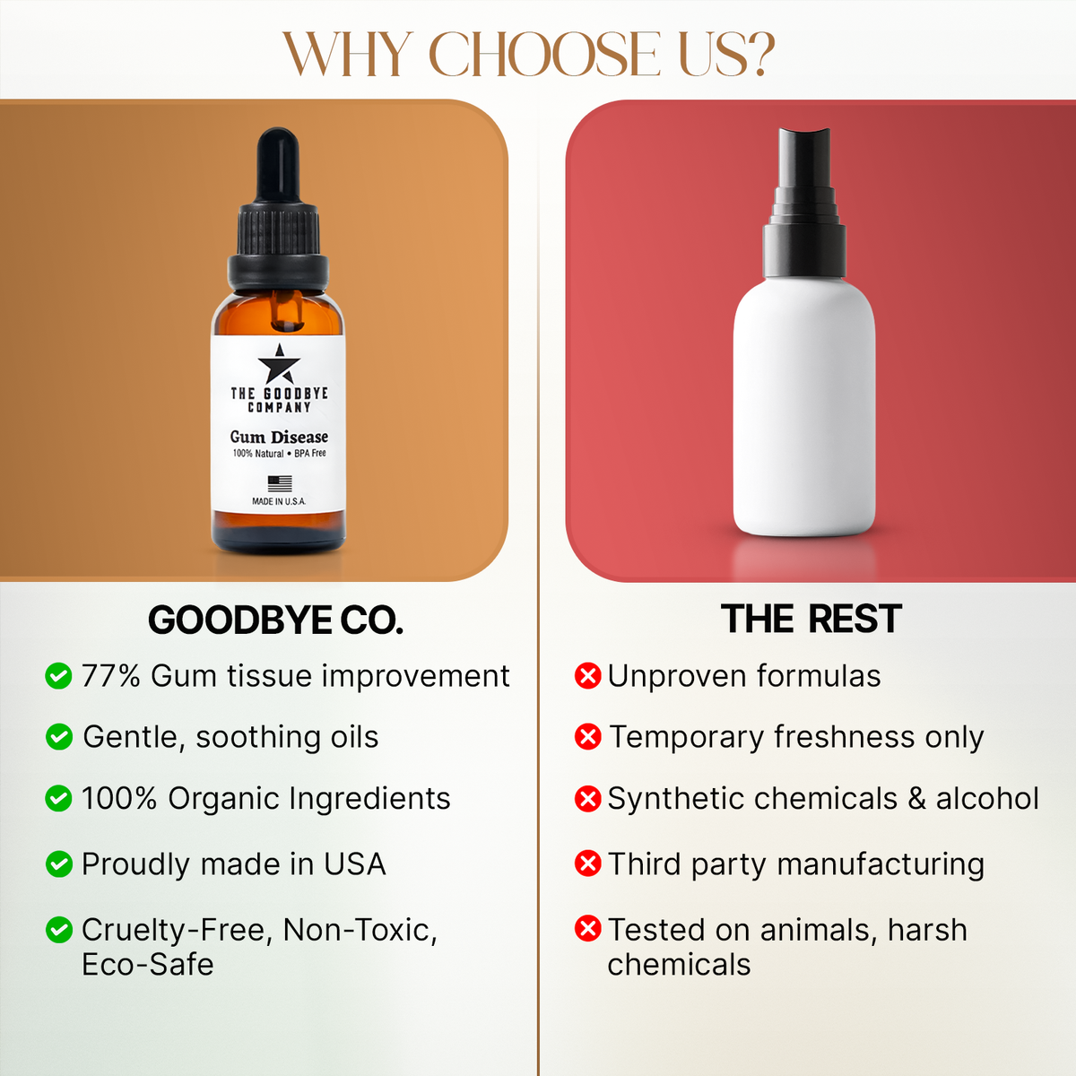 Our #1 bestseller. A proprietary blend of Omega 3 & 9 oils infused with Neem and Clove essential oils that targets the root cause of gum disease — without harsh chemicals or painful dental procedures.